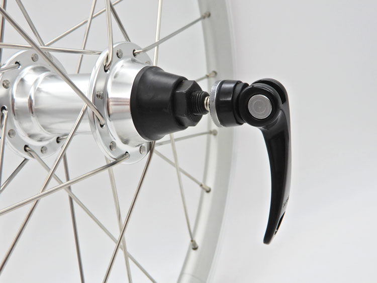 適応車種:Birdy Classic、BD-1 Classic、8段変速か9段変速のBD−1 リムテープとクイックレリーズが初めから付いています。 Birdyハブ、ALEX DA16のダブルウォールリム、ステンレス製スポークで組まれた8段変速、9段変速対応のホイール スポークの本数は24本ですから、空気が入れ易いです。 重量はリムテープとクイックレリーズレバーを含めて約 898gです タイヤは18x1.25(約31mm幅)と言う細いタイプから、通常の18x1.5(約38mm幅)、SCHWALBE Black Jack 18x1.9(約48mm幅) まで様々な太さのタイヤを取り付け出来ます。 |